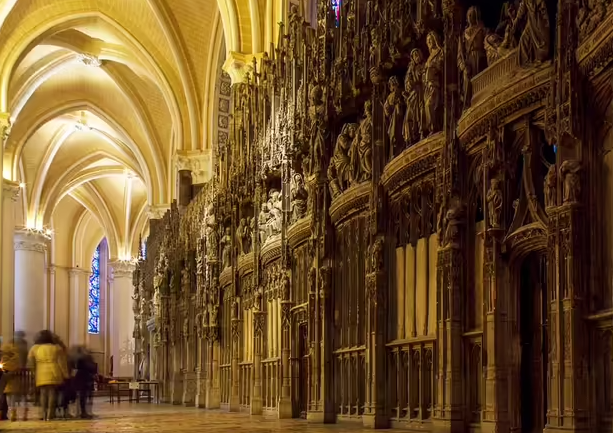고딕 건축의 또 다른 독특한 특징은 리브볼트(갈비형 둥근지붕)입니다. 이 리브볼트(갈비형 둥근지붕)는 골격 구조를 형성하는 일련의 교차하는 돌 갈비뼈로 구성됩니다. 리브는 지붕과 벽의 무게를 보다 효과적으로 분배하여 더 넓은 공간을 허용하고 두꺼운 지지 벽의 필요성을 줄입니다. 리브볼트(갈비형 둥근지붕)는 또한 천장에 복잡한 패턴을 만들어 고딕 건물의 미적 매력을 더합니다.